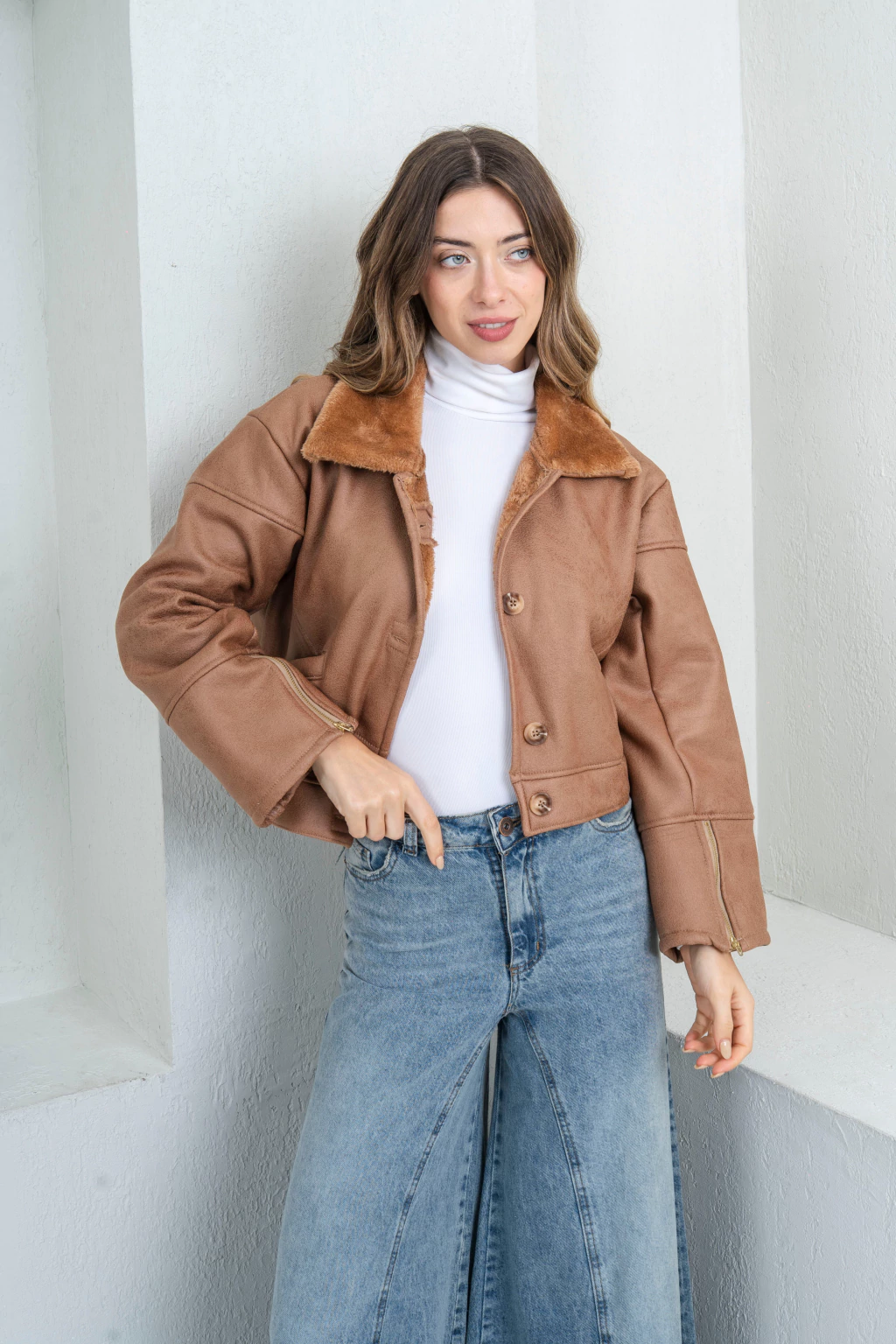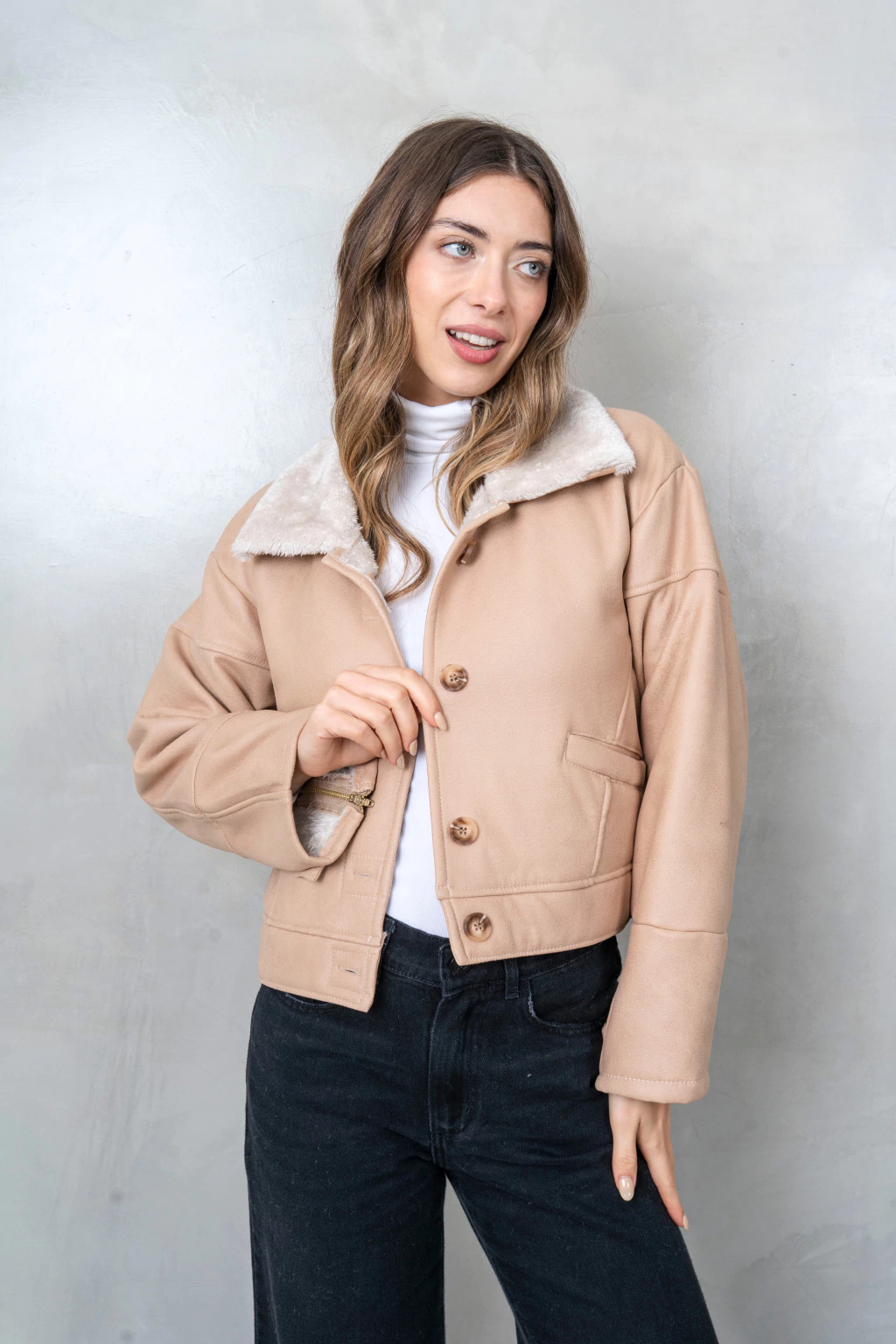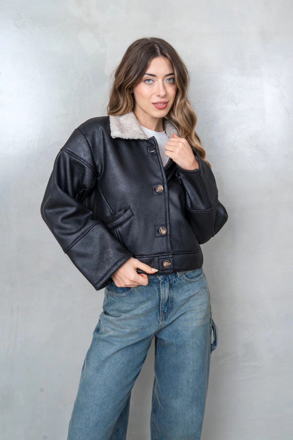 Campera de cuerina con interior de corderito. Un articulo premium de temporada, con bolsillos internos, detalle de envivado en ojales y puño con cierre y broche metalico. Una campera llena de detalles que la hacen un item destacado!