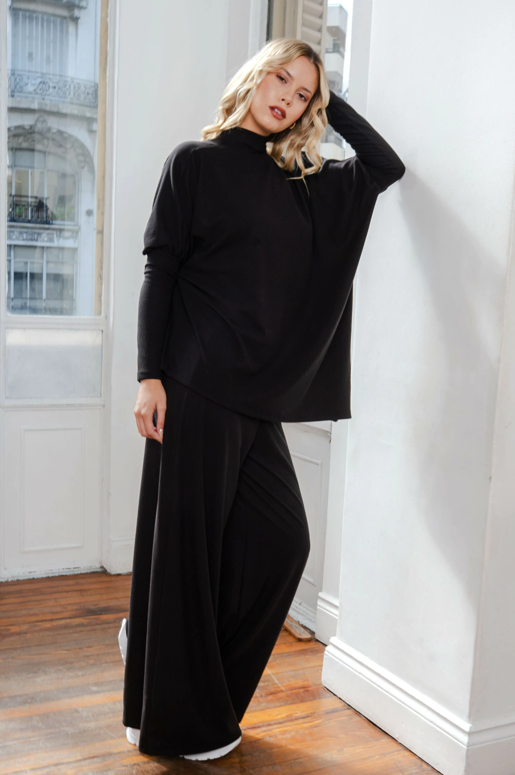 Palazo de termopolar con textura morley, con cintura elastizada,